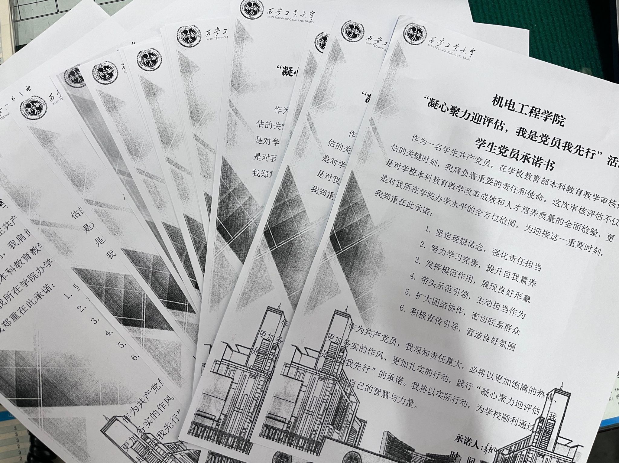党委号召,于10月11日在工二310举行了“凝心聚力迎评估,我是党员我先行”党员承诺书签署仪式。此次活动旨在进一步激发全体党员的责任意识与担当精神,以饱满的热情和扎实的行动迎接即将到来的重要评估工作,充分发挥党员在评估工作中的先锋模范作用。