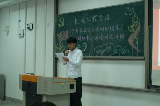 李卓耘代表第69期党课优秀学员发言,呼吁大家不忘初心,以本次积极分子培训班为起点,坚定理想信念,做有理想、敢担当、能吃苦、肯奋斗的新时代好青年。
