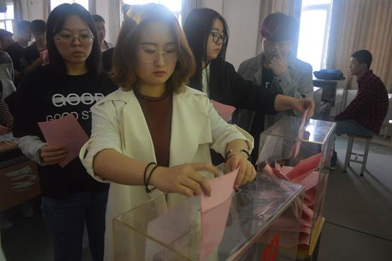 党委书记赵玉厚老师致开幕词。核实到场正式代表人数、拆封选票封袋、分发选票、宣读选举办法,前期准备严格按照选举流程,环环相扣。随后,唐雅莉老师宣读参选代表个人简历并宣布选举正式开始:填写选票、检查票箱、当众点票,整个过程透明公开,保证本次投票公平公正。各位学代表们填写选票时深思熟虑、仔细斟酌,在综合候选人的各方面表现后投下自己宝贵的一票,认真履行了自己的选举权与被选举权。最后由总监票人公布选举计票结果,宣读所有候选人得票,主持人宣布最后当选结果:乔璐等26位代表当选为共青团成人导航