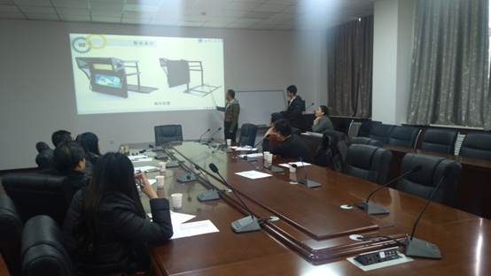 活动伊始,院长马保吉教授以创新驱动发展为主题,介绍了本次比赛的意义与目的。接下来,在张新运老师的统筹安排下,各参赛队伍开始有序入场进行作品展示。本次大赛以“关爱民生,美好家园”为主题,参赛作品范围涵盖辅助人工水果采摘装置和解决城市小区中家庭用车停车难问题的小型停车机械装置设计与制造这两个方面。各评委老师认真聆听各参赛队伍的设计想法,并对作品提出了很多好的建议与期望。在每组比赛结束之后,评委老师们一次次激烈的讨论与交流也保证了评分的公平性、合理性。在经历6个小时精彩绝伦的答辩之后,各评委老师再次开会对这37组参赛队伍进行了复议,并最终确定了各参赛队伍的分数与排名。