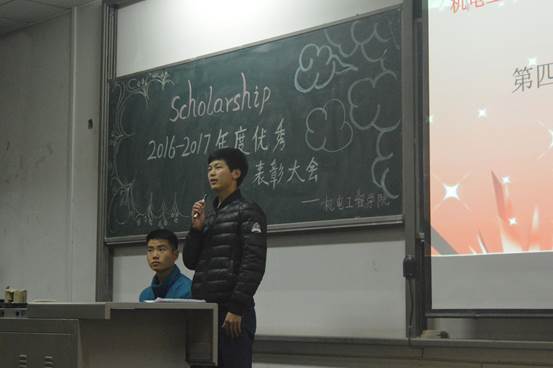 大会伊始,主持人致开场词并介绍到场嘉宾。大会第一项,全体起立,奏唱中华人民共和国国歌,本次表彰大会也正式拉开帷幕。而后,张晖老师宣读了关于学生奖励表彰的决定。会议第三项是颁奖环节,各位出席嘉宾为获奖的集体及优秀个人代表颁奖并合影留念,上台领奖的同学们神采奕奕,以自信的笑容领取了属于自己的荣誉。随后,学生代表刘德荣上台分享了自己的学习经验及方法,语言诚挚而不失风趣,鼓励大家珍惜青春时光,不断拼搏,努力进取。最后,院党委书记赵玉厚老师上台对本次大会进行总结:对获奖同学表示鼓励与祝贺,并对全体同学提出期望,鼓励所有同学能尽早树立目标,寻找适合自己的学习方法,不断取得进步,取得荣誉。