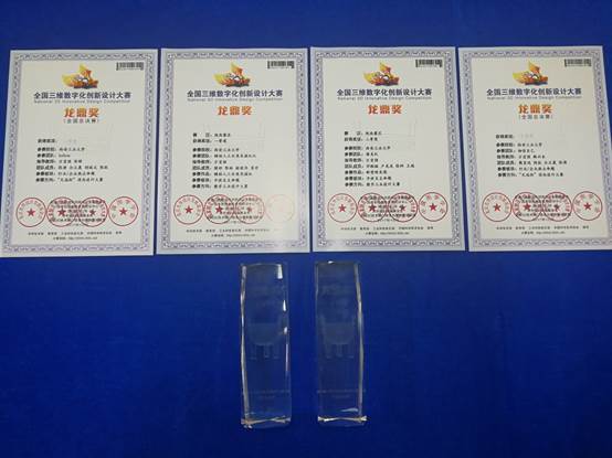 张涛等同学的“Infinte”团队获“逆向设计大赛”方向1等奖,樊宏运等同学的“相信自己”团队获3等奖;李锦涛等同学的“GWR”团队《Gemini Wash Robot》项目获“数字工业设计大赛”方向2等奖,张家旺等同学的“ID”团队《双形态战地机器人》项目获3等奖。