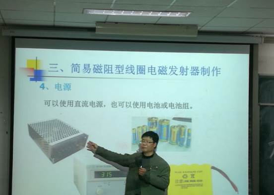 宣讲会上,王泽民老师为大家详细地讲解了有关加农炮的基础知识。王老师先以火炮的发展史做引导,对火炮进行了分类,并讲解了火炮的局限。而后对电磁炮进行了概述,介绍了电磁炮的发展史,电磁炮的分类:线圈炮(本次比赛主要用炮)、轨道炮、电热炮、重接炮,以及电磁炮的发射原理、结构特点。重点有:电磁炮是利用洛伦兹力来对金属炮弹进行加速;电磁炮主要由电源、加速器、开关三部分组成;本次比赛所使用的加农炮主要由炮管与线圈,电容,电源,开关等几大部分组成。