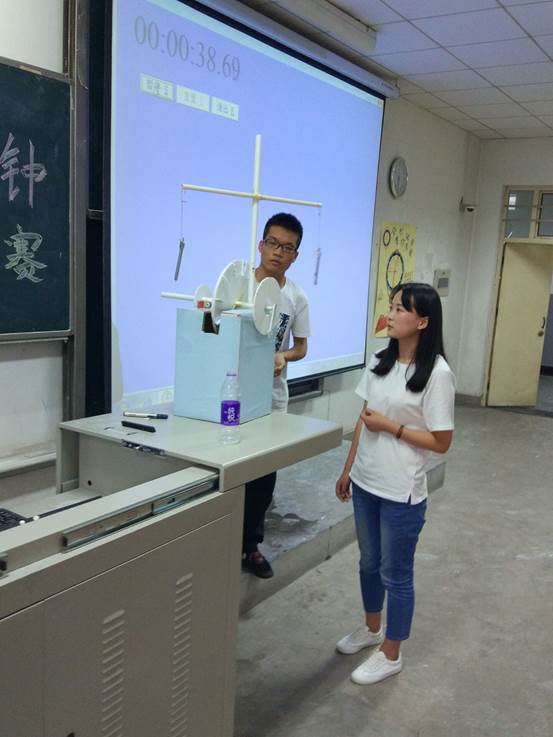 本次大赛共有17只队伍参赛,参赛队员热情高涨,选手们通过PPT对自己作品的外观、原理以及创新等方面做出了精彩展示,并对作品进行演示。评委也针对于每一队选手们作品的优缺点进行点评,比赛共产生了一等奖一名,二等奖二名,三等奖三名.分别是:一等奖的作品为御梦木童队的圆动力;二等奖的作品为云祺队的水动力机械钟、雏鹰之梦队的盒式摆钟;三等奖的作品为翔宇未央队的拨动钟、旋转世界队的月光下的机械钟、创客队的流水动力钟。