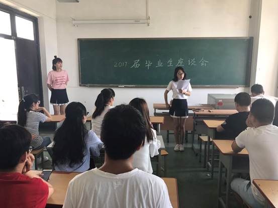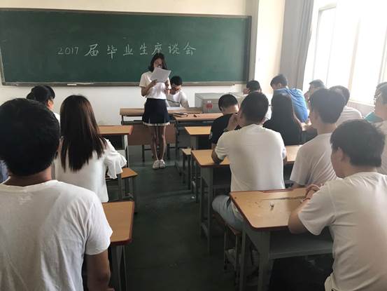 2017届毕业生座谈会在工科2楼501室召开。辅导员张晓君,高珊,刘昊雨以及近30名毕业生代表参加了座谈会。本次座谈会由张晓君老师主持。