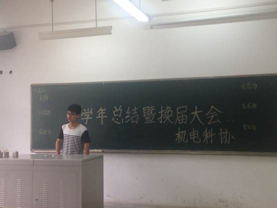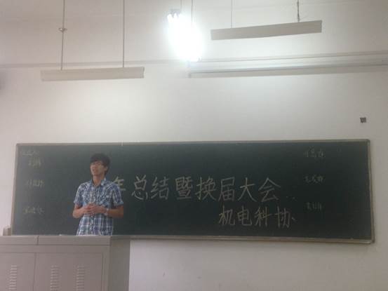 科协与技术协会在教3—208举行了“学年总结大会暨换届大会”。出席本次会议的嘉宾有机电科协主席何周旋、副主席张凯文以及各部门部长。本次换届大会由科协副主席张凯文主持。