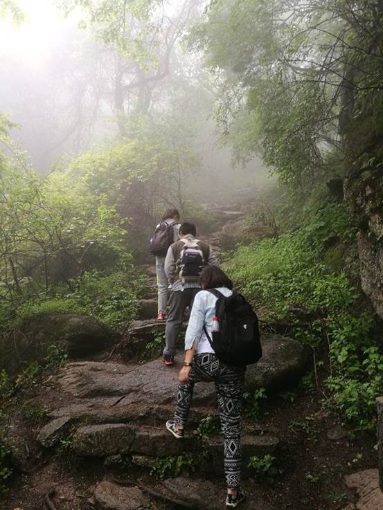 的教职员工们穿行在风景如画的王顺山森林公园中,欣赏着奇峰耸立、怪石嶙峋、沟谷幽深、清潭点点,沉浸在拥抱自然,登高望远的乐趣中。