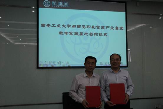 实习实训基地授牌仪式于西安印包产业集团正式举行,印包产业集团总裁袁学武、副总裁袁浩洋、人力资源部部长刘海军、成人导航