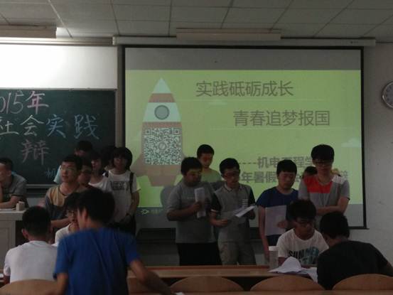 在教2-201举行2015年暑期社会实践答辩会。本次答辩会评委有机电成人导航