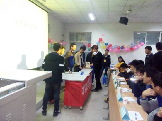 经过各组参赛选手和科协干事们的精心准备,加农炮制作大赛于2014年11月27日晚6:30在教2-201如期举行。出席嘉宾有13级导员薛鹏老师、机械电子系主任王洪喜教授以及各成人导航