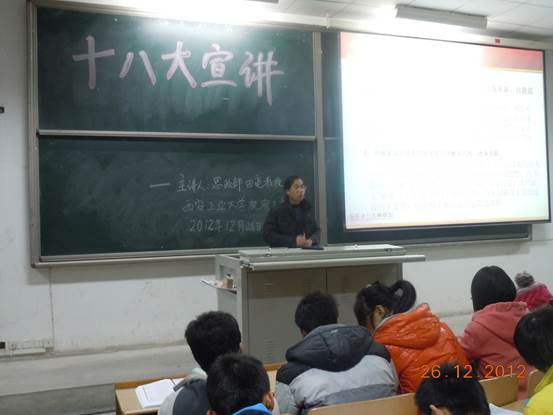 十八大精神宣讲团成员、思政部主任田亮教授于2012年12月26日在未央校区教C105为成人导航