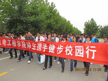 上午11时20分,健步行队伍从未央校区教学楼西侧出发,先后经过主体教学楼、学生宿舍、学生食堂、图书馆,行政楼。在活动过程中,张忠书记深入新生队伍,为同学们详细讲解成人导航的各项设施、交流思想,使新生们对校园有更加直观的认识,帮助新生更快地熟悉校园,了解和适应大学生活,能够很快地融入大成人导航园生活。