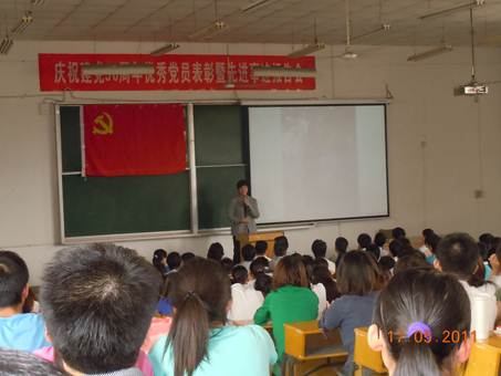 分别在学生与教工中召开庆祝建党90周年优秀党员表彰暨先进事迹报告会,共表彰“先进党组织”4个,“党员先锋岗”10个,“优秀党员”3名,“优秀党务工作者”2人,“优秀组织员”1名,“优秀学生党员”11人,并邀请获奖代表做事迹报告。