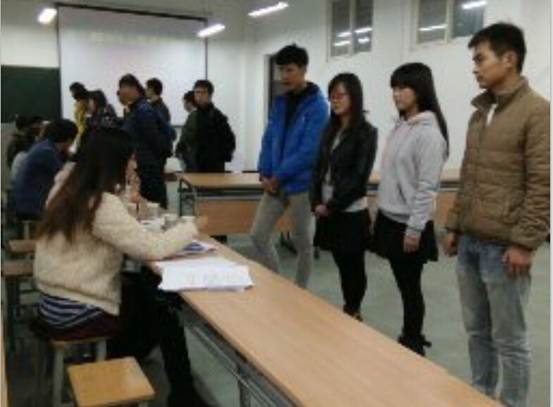 即将迎来她六十岁的生日,任何一位爱她的学子都想为她的生日献上自己的力量。报名人员陆陆续续到达面试现场,青协干事和志愿者认真组织安排签到与分发报名表。面试项目主要分为两类:一是志愿者和候场协调组,二是歌舞组和礼仪队。面试官犀利的提问,面试者巧妙的回答,无不让面试现场充斥着竞争气氛,让面试进行得精彩绝伦。在机电“阳光”青协井然有序的组织安排下,所有报名同学全力以赴,尽情展示自我,匆匆忙忙,紧紧张张,今天的面试顺利进行。