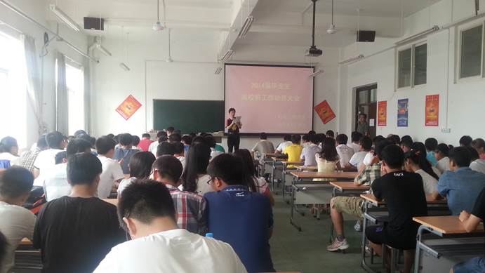 2014届毕业生文明离校工作动员大会在工2-504教室召开。2010级学生骨干、全体党员参加了大会。大会由2010级年级主任张晖老师主持。