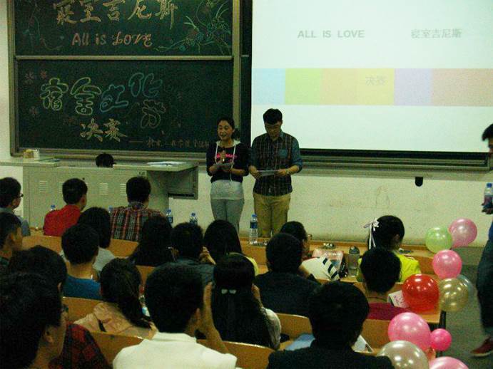 在经纬广场和教3-217隆重举办了以“All Is Love”为主题的第三届寝室吉尼斯大赛。此次大赛面向全校大一学生,活动共设有如下4个环节:自行车慢骑、急速乒乓、极限接力、寝室风采。