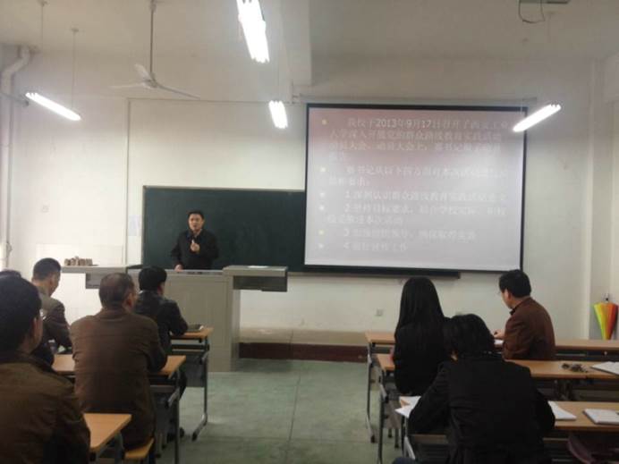 2014411下午,成人导航 在工2-504教室举行群众路线教育实践活动总结大会。参加大会的有成人导航 全体教师、联系机电成人导航 的校长廉振民、校群众路线教育实践活动督导组成员后勤集团党总支书记朱海莹和学生代表。