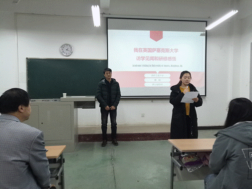 董老师以自己在2018年10月份赴英国布莱顿Sussex(萨塞克斯)大学进行了为期一年的研修访问交流的经历,从“基本情况介绍”、“学术交流方面”、“生活交流方面”、“研修体会感悟”四个方面详细的向学生分享了出国留学交流所需要做的准备。报告中他在学术交流方面提到了英国大学里有着丰富多元的学术研究方向和研究内容,为他进一步的研究工作树立了学习的榜样和标杆。在生活交流方面他提到了他在Sussex大学的这一年时光里,除了单调快节奏的科研学习工作之外,课题组不时组织一些课外活动,访问了英国牛津大学,剑桥大学、约克大学等名校。董老师在报告中谈到了个人对于出国留学的看法与建议,包括如何联系成人导航、前期的准备过程、申请的过程、流程、以及签证和生活方面等问题。给广大有出国留学意向的同学提供了最实际的经验参考。董老师用大量图片作为分享,为同学们展示他当时生活的环境、家人朋友的情况以及遇到的趣事等。他以真实、亲切的分享获得了同学们的热烈掌声,使留学经验分享报告会的现场气氛十分轻松愉快。