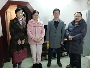 姚敏茹和朱育权与卢志伟老师家属进行了亲切交谈,卢志伟同志现在正在英国进行访学交流,妻子一人在家照顾一岁的女儿,十分辛苦。在场职工代表们一起交流育儿心得,并祝福他们阖家幸福,宝宝健康成长。