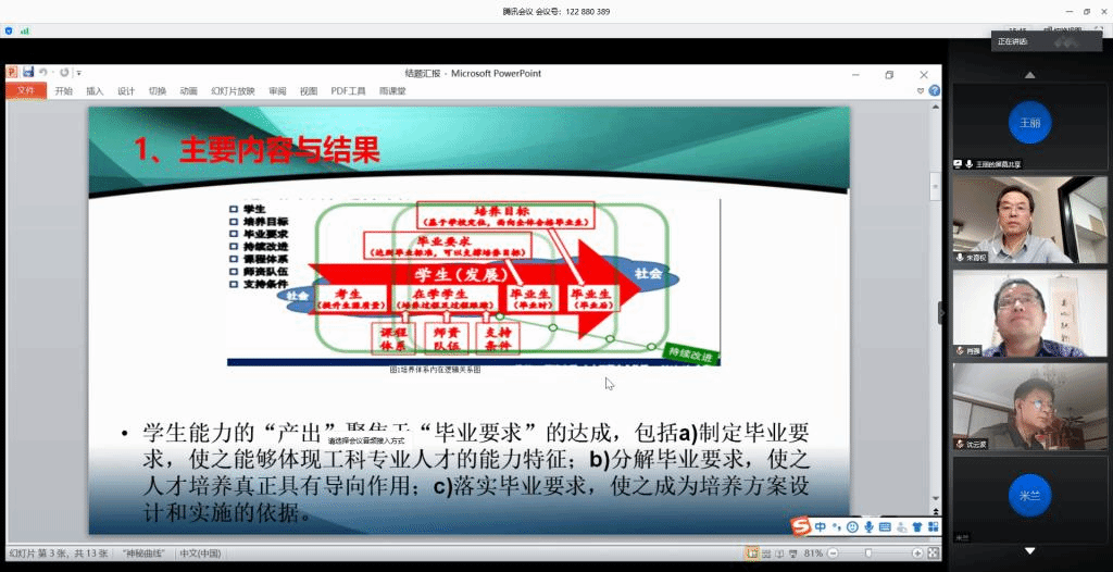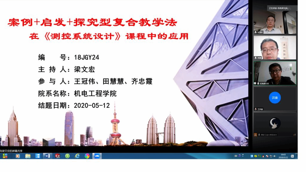 教学秘书将所有材料都做了数字化处理,提前将电子版结题答辩材料发给专家审阅,保证线上答辩质量不掉线。整个答辩过程均录屏截图,作为答辩记录留存,坚决确保答辩的公开性和真实性。在答辩过程中,项目负责人分别介绍了项目的预期目标和实际研究进展情况,并围绕项目的创新点、实际教学效果、存在问题和改进措施等做了较详细的汇报。根据项目负责人的汇报,专家组分别进行了问题质询,与项目组进行了充分且深入的交流,并给出了进一步完善的意见和建议。