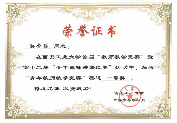 机械设计系孙金绢老师脱颖而出,获得“青年教师教学竞赛”赛道一等奖的佳绩。