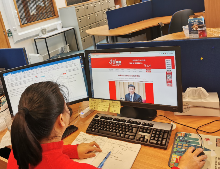 为进一步推动思想建党、理论强党,庆祝党的99周岁生日,筑牢信仰之基、补足精神之钙、把稳思想之舵,引领全体党员统一思想,凝聚共识,扎实推进主题教育常态化,着力“学做”结合,有力推动理论学习入脑入心,以实际作为促发展谋大局。院党委和出国(境)师生党员保持定期联络,建立专门工作群,及时发送学习资料,抓好线上线下学习教育,每天“@全体党员今天你学习强国了吗”,确保出国党员主题教育学习不掉队。