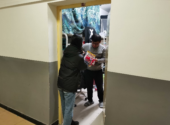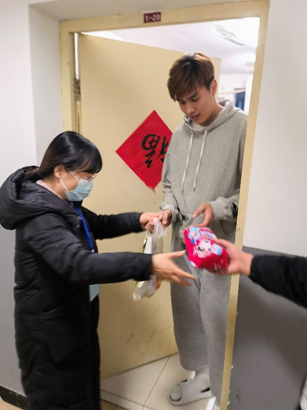 凌晨一点,已经进入了新的一年,她和同事们仍站在九公寓宿舍楼下值守,保障学生安全。当看到家人信息,通过各种渠道拼团的蔬菜终于几经周折送到了家里,她松了口气。新年的第一天,家人终于可以吃到可口的饭菜,她笑着说这是个好兆头。