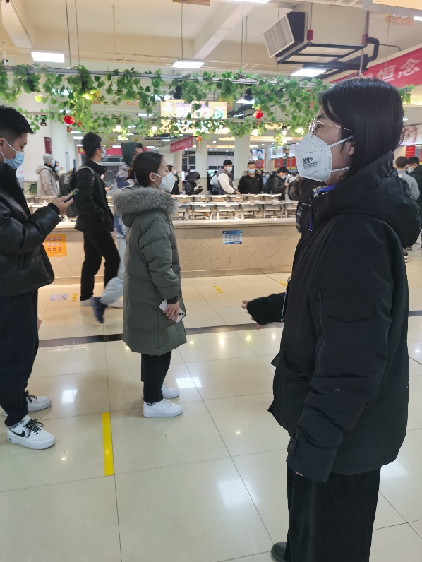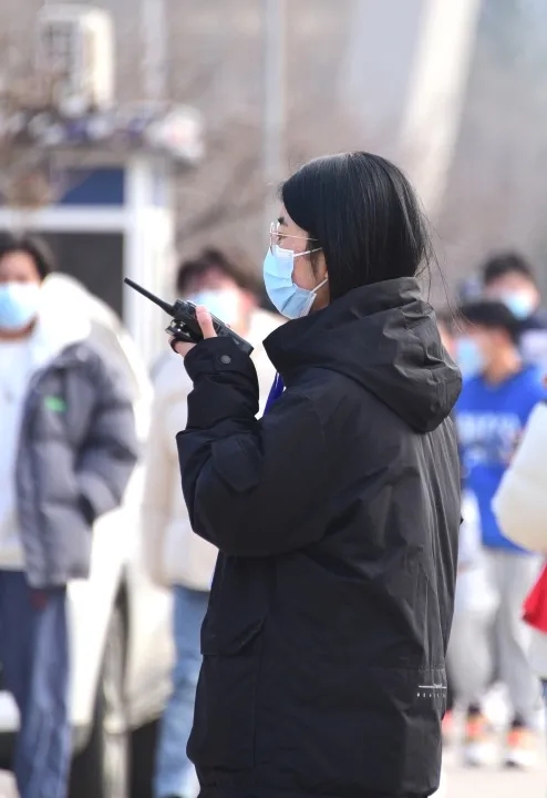 29日早晨七点,接到组长电话,紧急通知全员核酸,唐雅莉立即爬起床,匆忙洗漱后,15分钟内赶到核酸检测执勤点位,左手拿起对讲机接收指令,右手拿起小喇叭一遍遍的提醒:“请大家戴好口罩,保持一米五间距”、“后面同学快两步跟上”、“前面分成四路纵队”……平时很皮的同学最近也变得异常乖巧,服从成人导航安排,按时排队做核酸、错峰就餐、凭票洗浴、居寝线上学习,师生之间多了一些默契、理解和共同的期许。冬日的早晨冷风刺骨,两个小时的室外执勤脚已经冻到麻木,同事来电话说已在办公室煮好热乎的鸡蛋,你快上来吃早餐,我去换你。她心里一暖,战友情瞬间融化了冬日的寒冷。