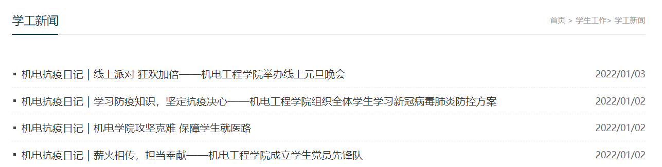 网站发稿28篇,内容涵盖机电抗疫行动、抗疫先进典型、特色做法、疫情防控科学知识、疫情期间线上文化活动、线上教学等各个方面,及时让全院师生第一时间了解成人导航
