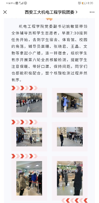 除了核酸检测组、餐厅超市组执勤、九公寓学生包干管理、成人导航
