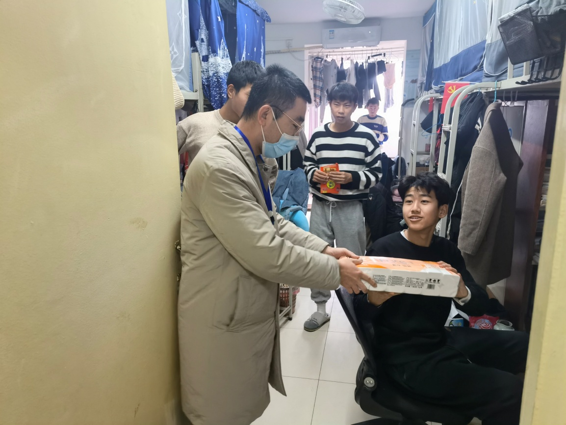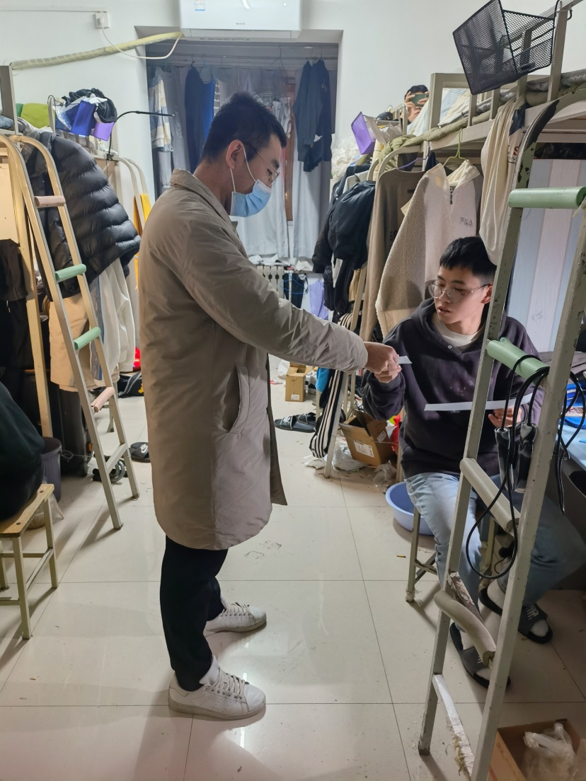 进驻公寓专班包干的9公寓的具体工作的同时,一刻也不敢松懈18级学生的日常管理工作。统计亟需药品清单、督促同学们做好每天的晨午检查、监督同学们一个不漏的进行核酸检测、分发防疫物资等,从早到晚,过的忙碌而充实。这些天里,我每天深入学生宿舍,和他们聊聊天谈谈心,解决一些生活问题,缓解他们不能按时回家的焦虑心情。虽是封闭管理、战时状态,我和学生们反而更能打成一片,心更近了,情更浓了,孩子们也在这次考验中成长了、蜕变了,这是作为他们的老师,最欣慰的事。