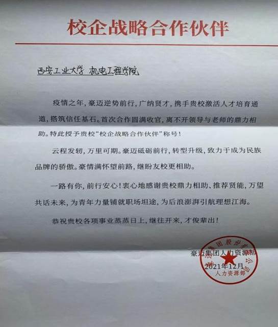 获得由豪迈集团授予的“校企战略合作伙伴”称号。成人导航