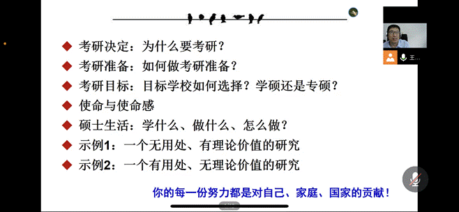 “灯塔引航 院长话考研”系列专题讲座第一期通过腾讯会议直播形式开讲。此次讲座由成人导航