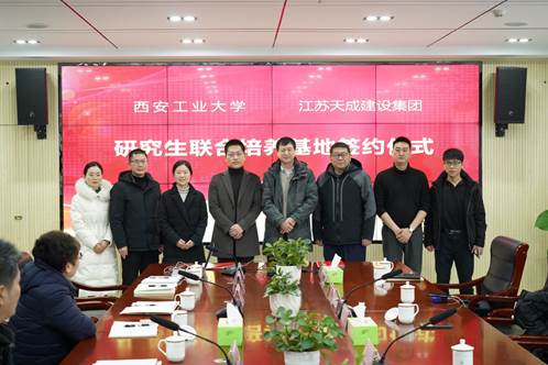 -江苏天成集团研究生联合培养基地”签约仪式在江苏天成集团举行,淮阴区副区长张丽丽、清江埔区副区长高立志、天成集团总经理李建淮、副总经理高军、机电成人导航
