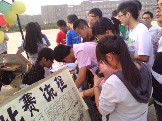 青年学子的热情与激情。启动仪式结束后,正式比赛于当天下午17:10准时开始。大赛分为两轮,第一轮由每支队伍分别寻找工作人员所给的照片,每支队伍留下一人作为第二张照片的寻找人,进过仔细的分工之后,在最短的时间内找到全部照片队伍可以晋级下一轮。经过激烈的角逐,16支队伍成功晋级,进入4月18日的第二轮“终极一成”。在充满趣味与挑战的比赛中,各参赛选手斗智斗技,在拼搏中展示出当代大学生自强自立、积极进取、团结协作、勇往直前的风采。同时,工作人员的精彩解说与周到服务,也赢得观众们的阵阵掌声。