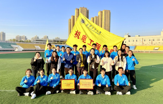 号召,主动承担组织协调、考勤签到、物资保障等工作,为排练的有序推进提供了坚实保障。参赛同学们展现出高度的集体荣誉感与顽强的拼搏精神。面对紧张的课程安排与密集的训练任务,大家合理调配时间,在训练中相互学习、相互纠正,反复打磨每一个动作细节,同学们用汗水诠释了坚持与担当,用默契展现了机电学子的团结协作精神。