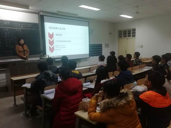 学生第二党支部转正及党员发展大会在教2-402顺利召开,主持本次会议的是学生第二党支部书记高珊老师,学生第二党支部全体党员同志及积极分子出席本次会议。