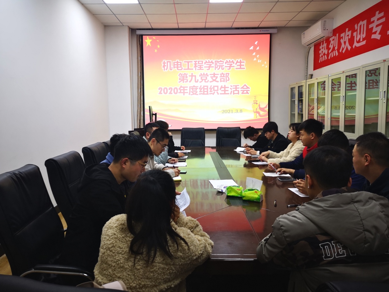 为深入学习贯彻习近平新时代中国特色社会主义思想和党的十九届五中全会精神,做好基层党组织组织生活会和开展民主评议党员,根据成人导航《2020年度基层党组织组织生活会和开展民主评议党员几个问题的通知》,3月8日晚,学生第九党支部于工二308会议室召开2020年度组织生活会,开展了民主评议。会议由支部书记刘昊雨主持,支部全体党员参加。