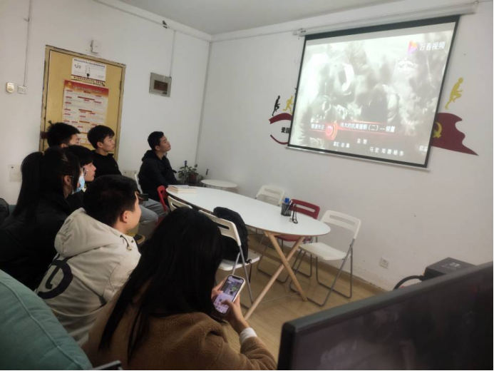 团学干部在一公寓工作站开展了红色电影观影活动。团委副书记文勃老师以及团学干部共同观看大型历史纪录片《功勋》。
