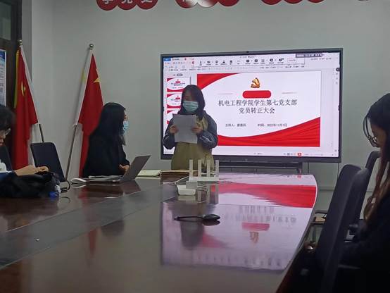 学生第七党支部在成人导航工科二号楼405教室召开党员转正大会,由支部书记唐雅莉老师主持。
