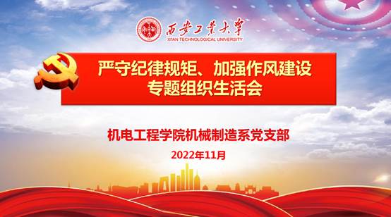 11月11日,机械制造系党支部在工2-221召开“严守纪律规矩、加强作风建设”专题组织生活会,支部全体党员参会,会议由支部书记张耿主持。
