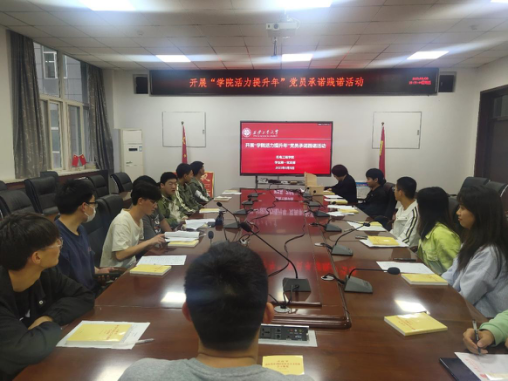 本次党员承诺践诺活动旨在坚持以习近平新时代中国特色社会主义思想为指导,深入学习贯彻党的二十大精神,以强化党员责任意识,增强党员使命感为目标,激发师生党员改革创新、干事创业的热情,树立党员先锋旗帜。活动中,张岩带领学生党员对照党员权利义务的规定做出承诺,围绕学习贯彻习近平新时代中国特色社会主义思想以及党的二十大精神主题教育做出承诺。之后大家围绕刻苦学习、道德养成、遵守校纪校规、参加志愿活动等多个方面做出交流,填写《党员承诺书》。