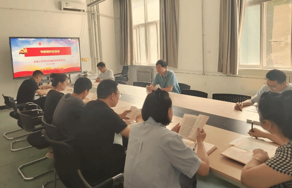 9月8日上午,机械制造系党支部在工2-221召开学习贯彻习近平新时代中国特色社会主义思想主题教育专题组织生活会,会议由支部书记张耿主持,包括院党委书记路金龙在内13名党员同志参会。