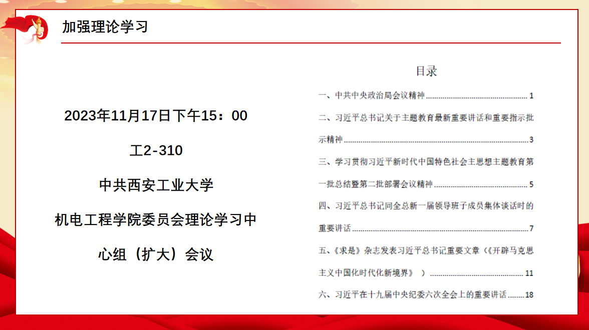 中心组(扩大)学习会议精神,其中包括中共中央政治局会议精神、习近平总书记关于主题教育最新重要讲话和重要指示批示精神、学习贯彻习近平新时代中国特色社会主义思想主题教育第一批总结暨第二批部署会议精神等。支部成员表示要进一步强化思想认识,更加紧密地团结在以习近平同志为核心的党中央周围,以饱满的政治热情和扎实的工作学习作风,为强国建设、民族复兴伟业注入更加强劲的动力。