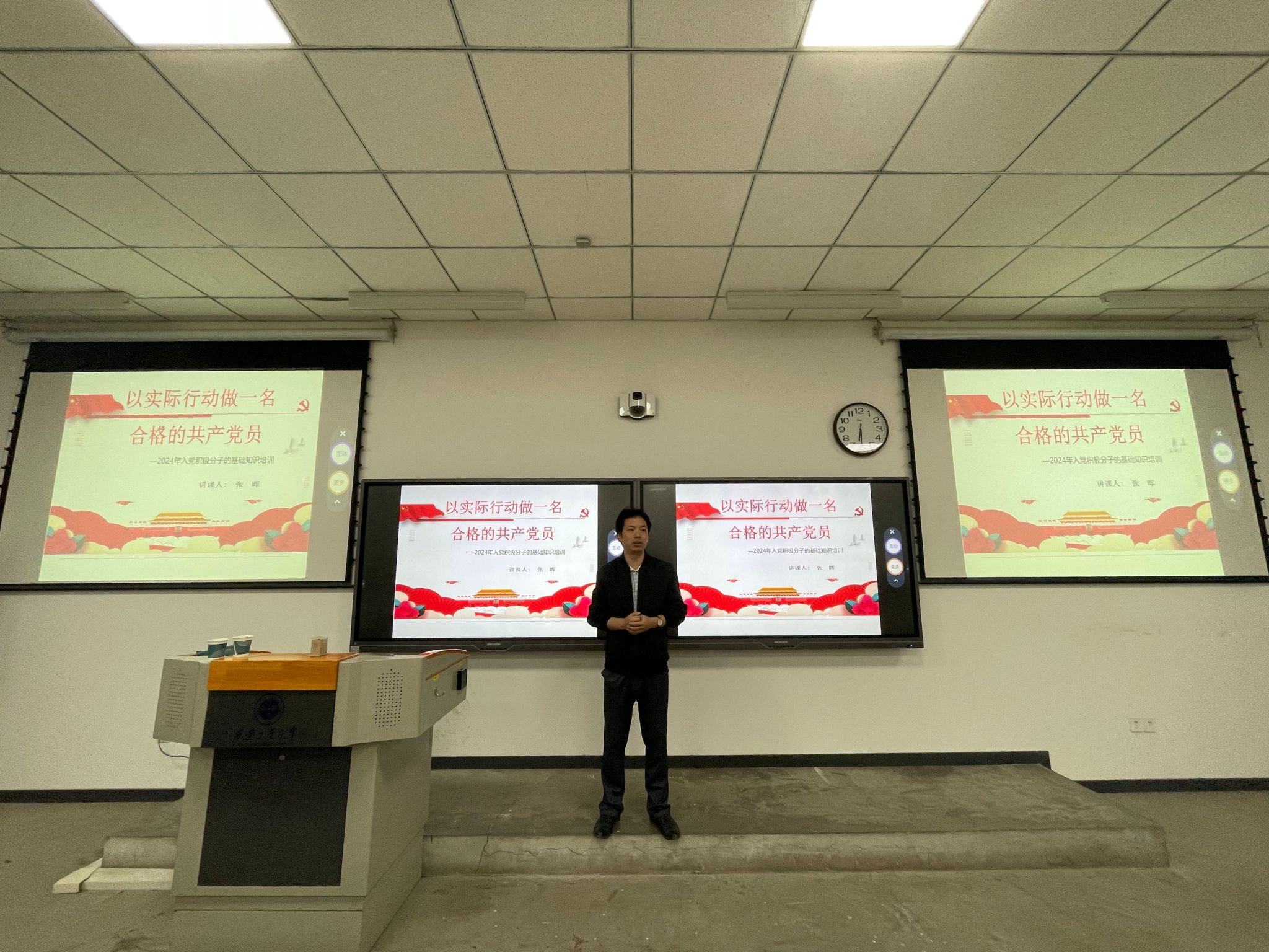 第68期积极分子培训班在教2-103开课,本次党课主题为“以实际行动做一名合格的共产党员”,由成人导航