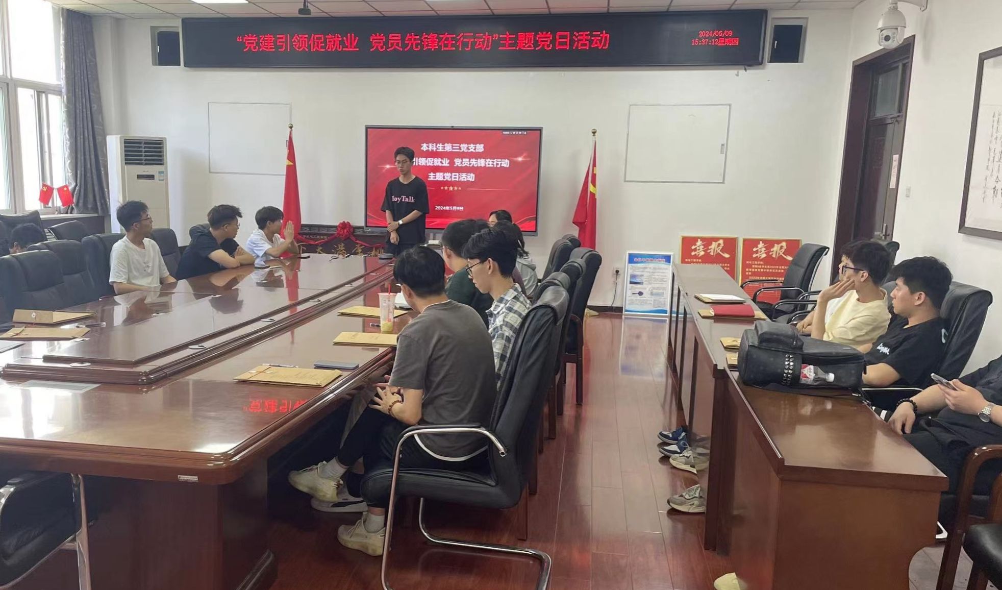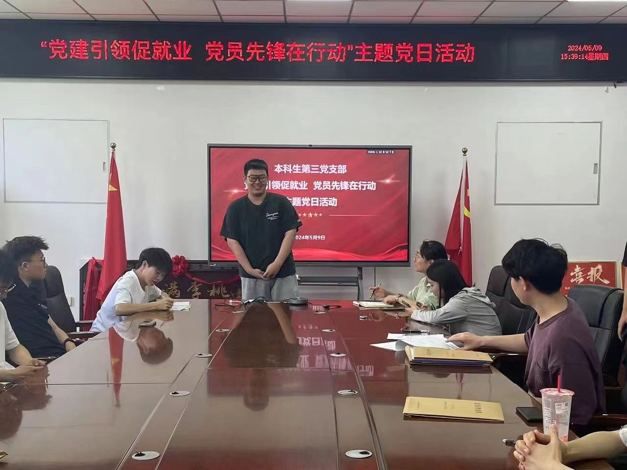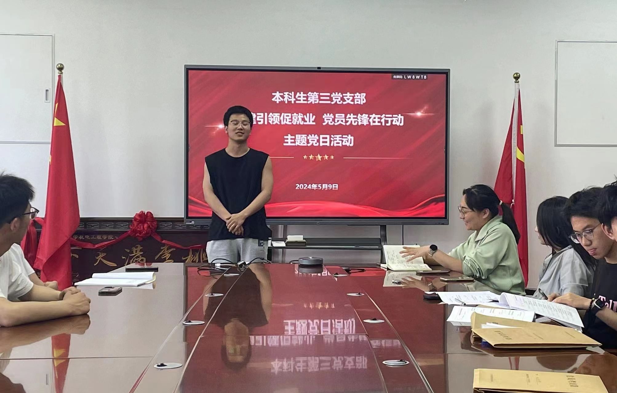 本科生第三党支部在工二310会议室召开“党建引领促就业,党员先锋在行动”主题党日活动,本次活动由党支部书记杨博主持,党支部全体党员参加。