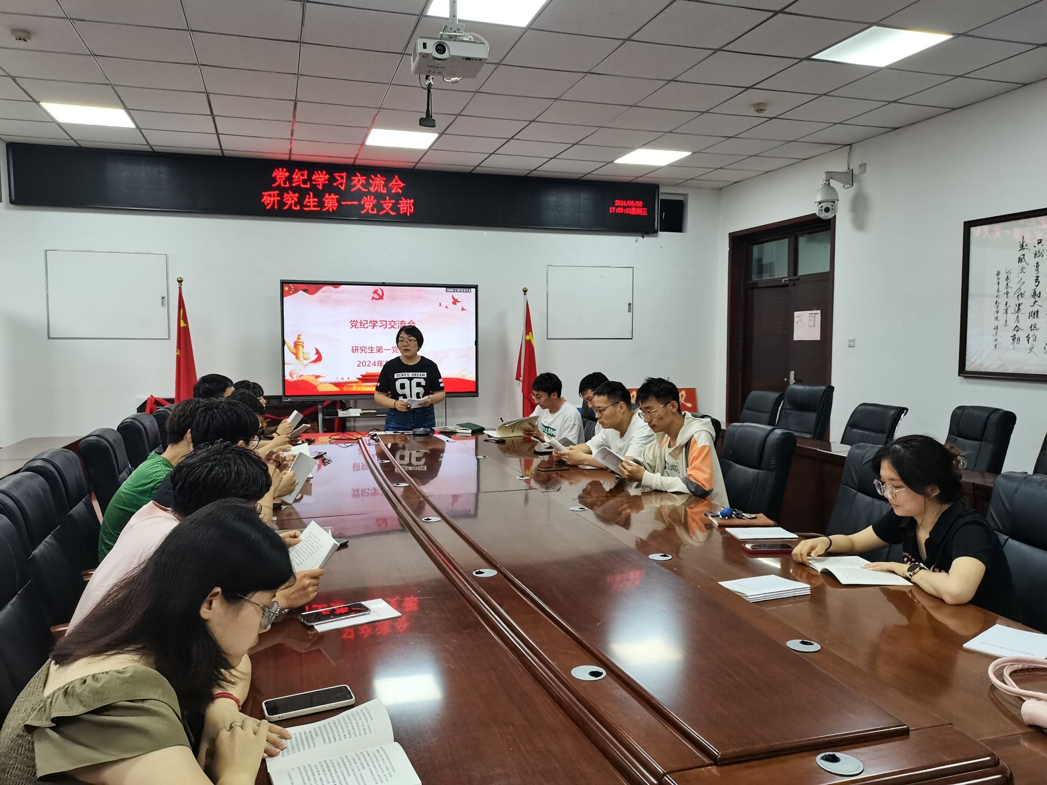 为深入推进党纪学习教育,提高纪律教育对规范党员思想和言行的先导性作用,提升研究生党员的纪律意识和规范意识,5月24日下午,研究生第一党支部在工2-310召开了《中国共产党纪律处分条例》解读会。会议由党支部书记张岩主持召开。